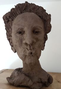 2019'Fluitende dame', 2019, Aardewerk, zwartbakkende klei Portret